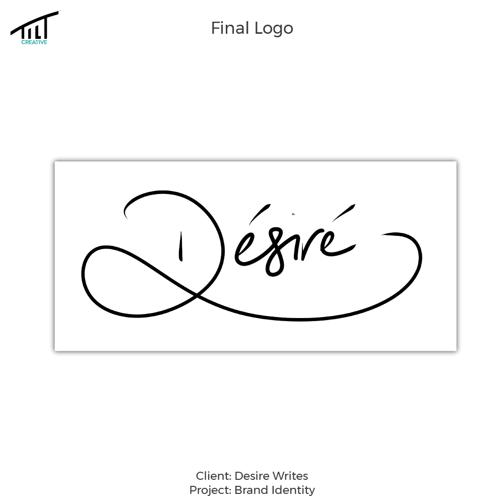 Since Désiré was not only a writer but also included her painting works on her website, we decided to make the brand more personal and give it a unique flare. What’s more unique than a signature? The motion of the logo reflects her journey as a writer and the wispiness adds a subtle, elegant flare, while the negative space gives way to the infinity symbol which reflects the infinite avenues she has as a writer.