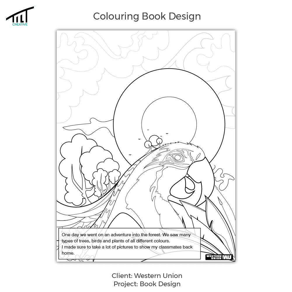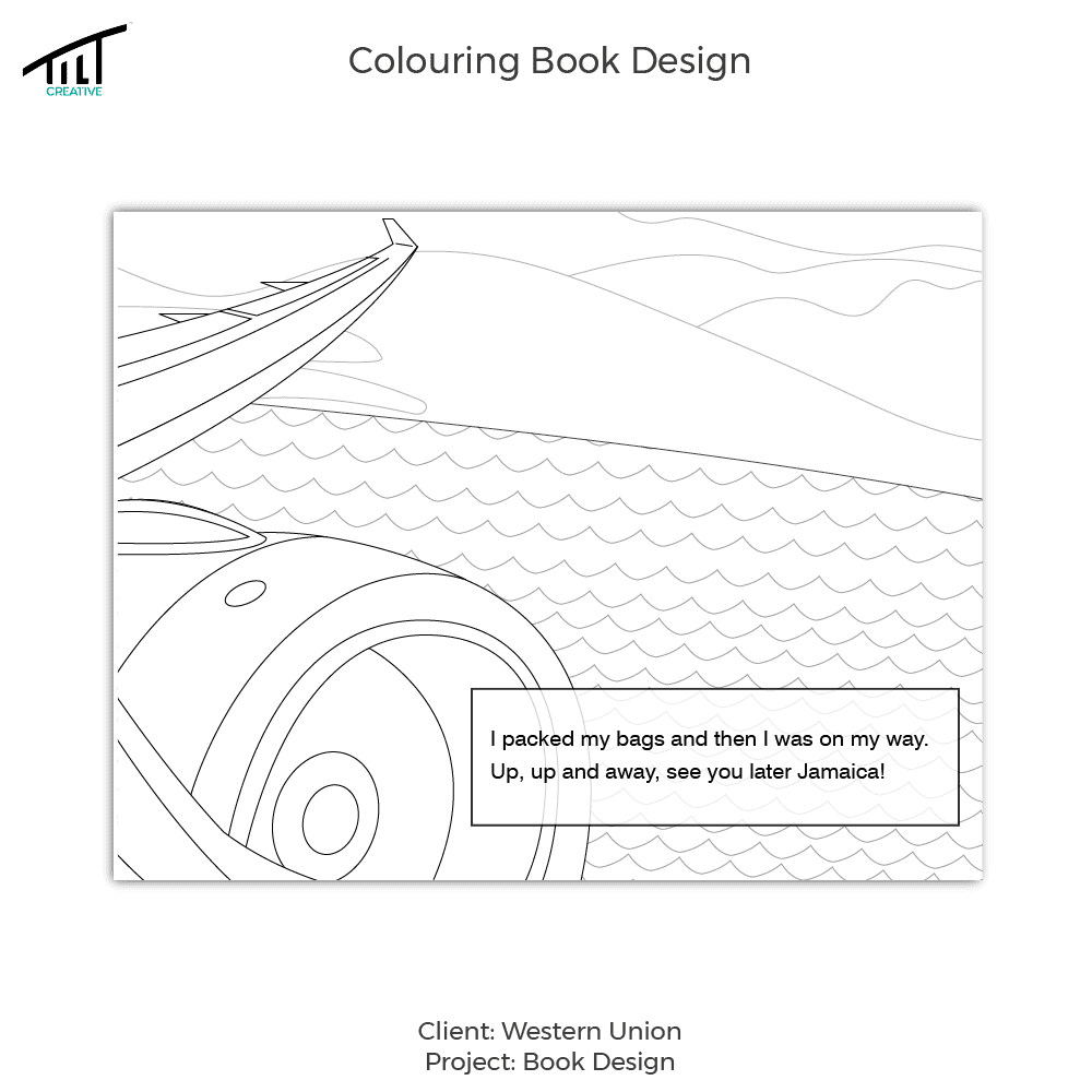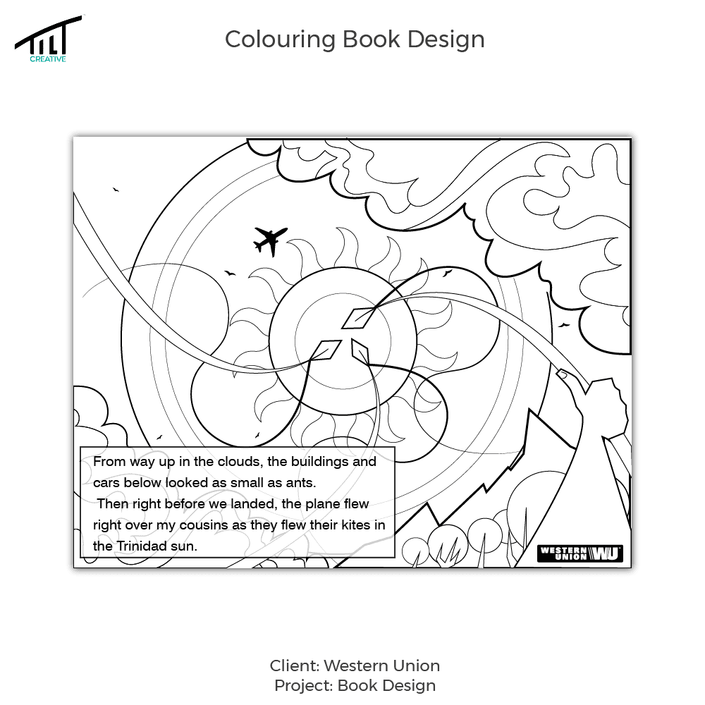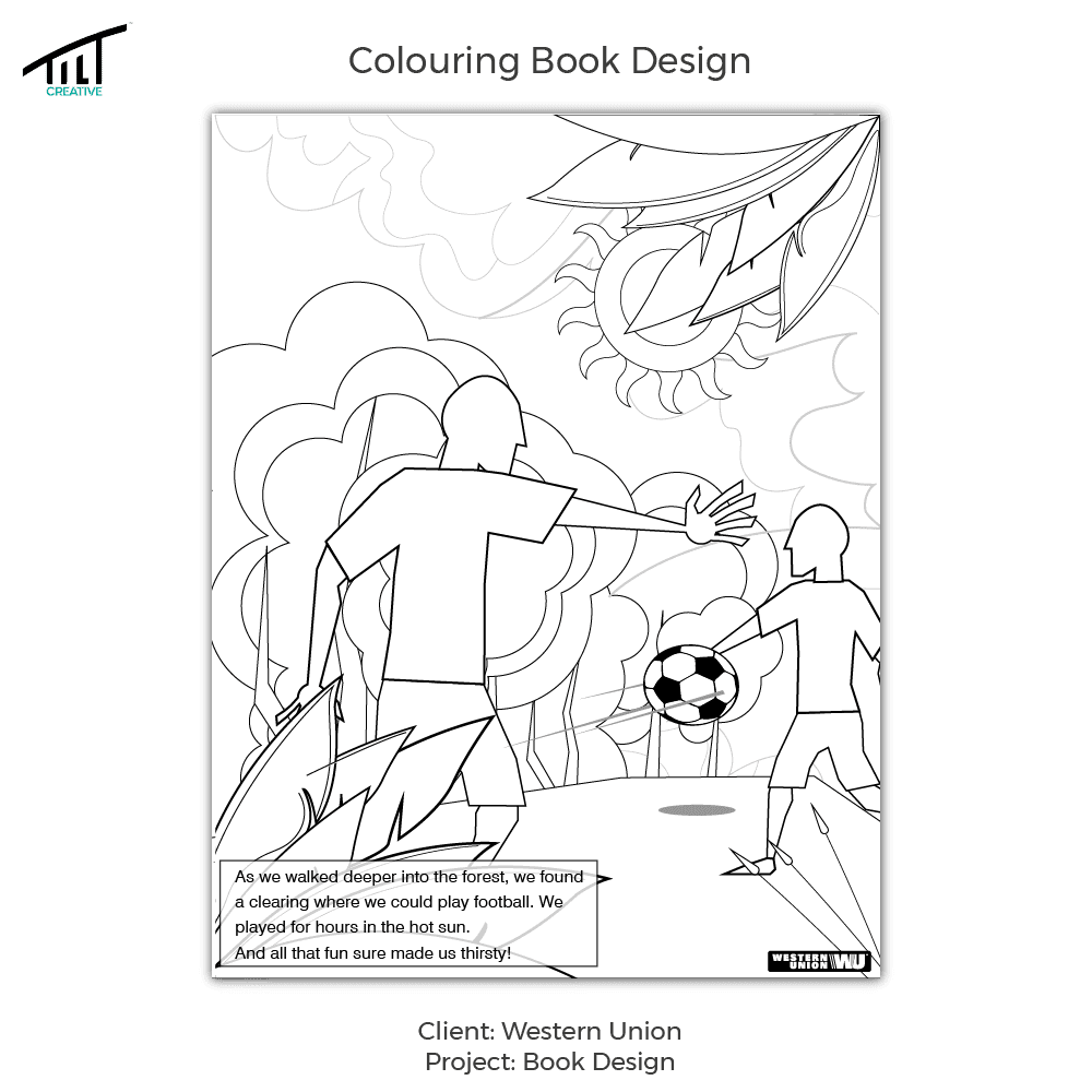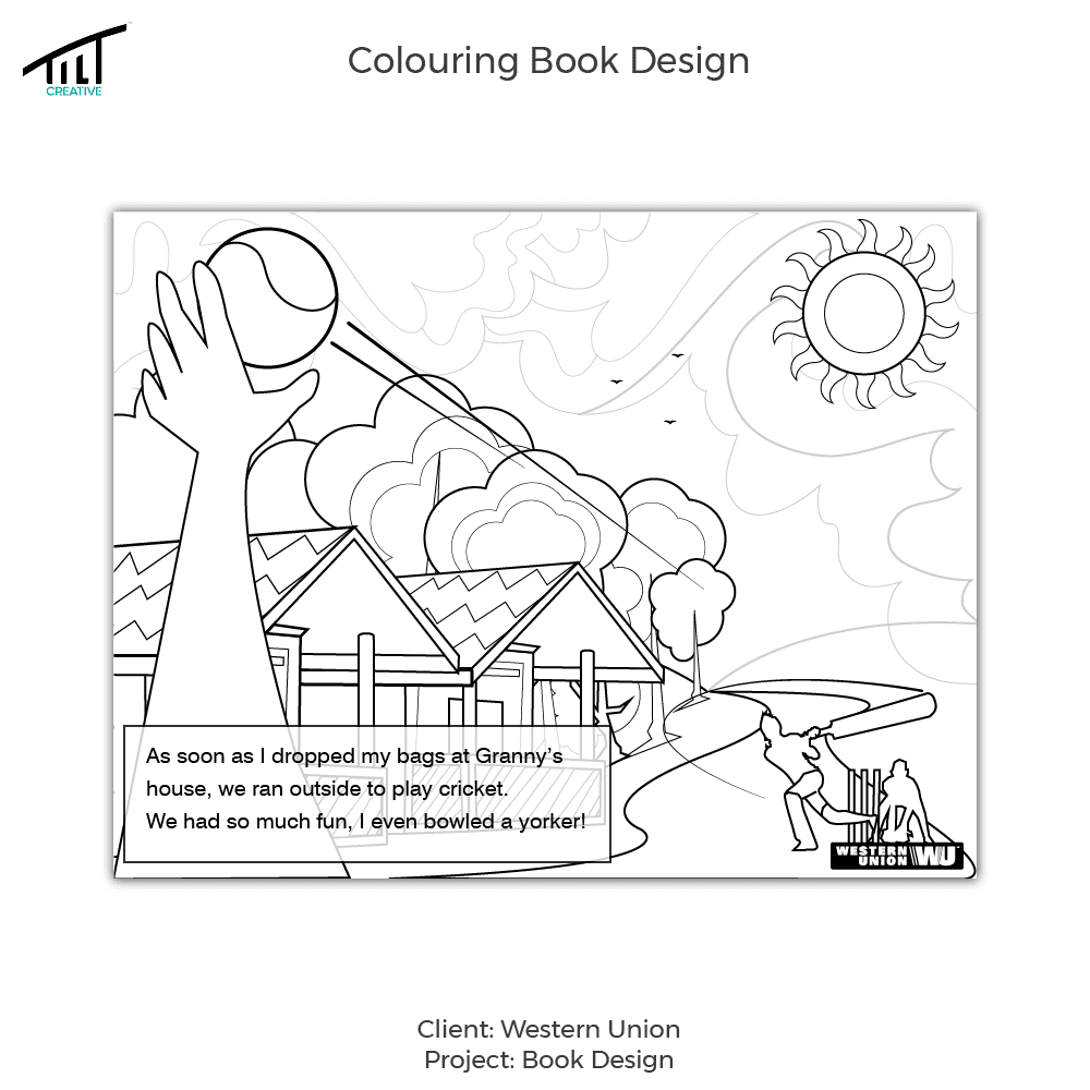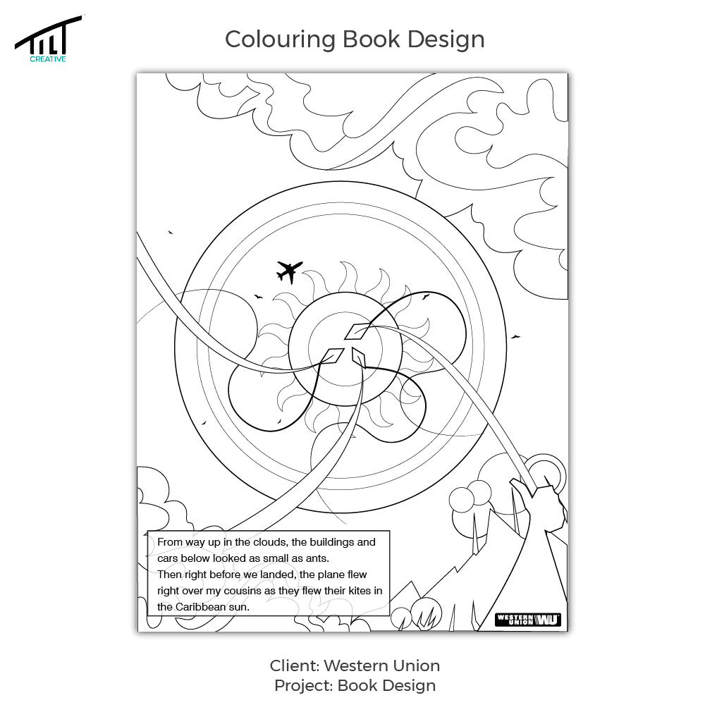 After some brainstorming, we decided to develop a colouring book for the back to school period which was right around the corner. The storyline connects a young girl to her grandmother via Western Union, making the brand relevant and important as the connecting factor at the beginning and end of the story.