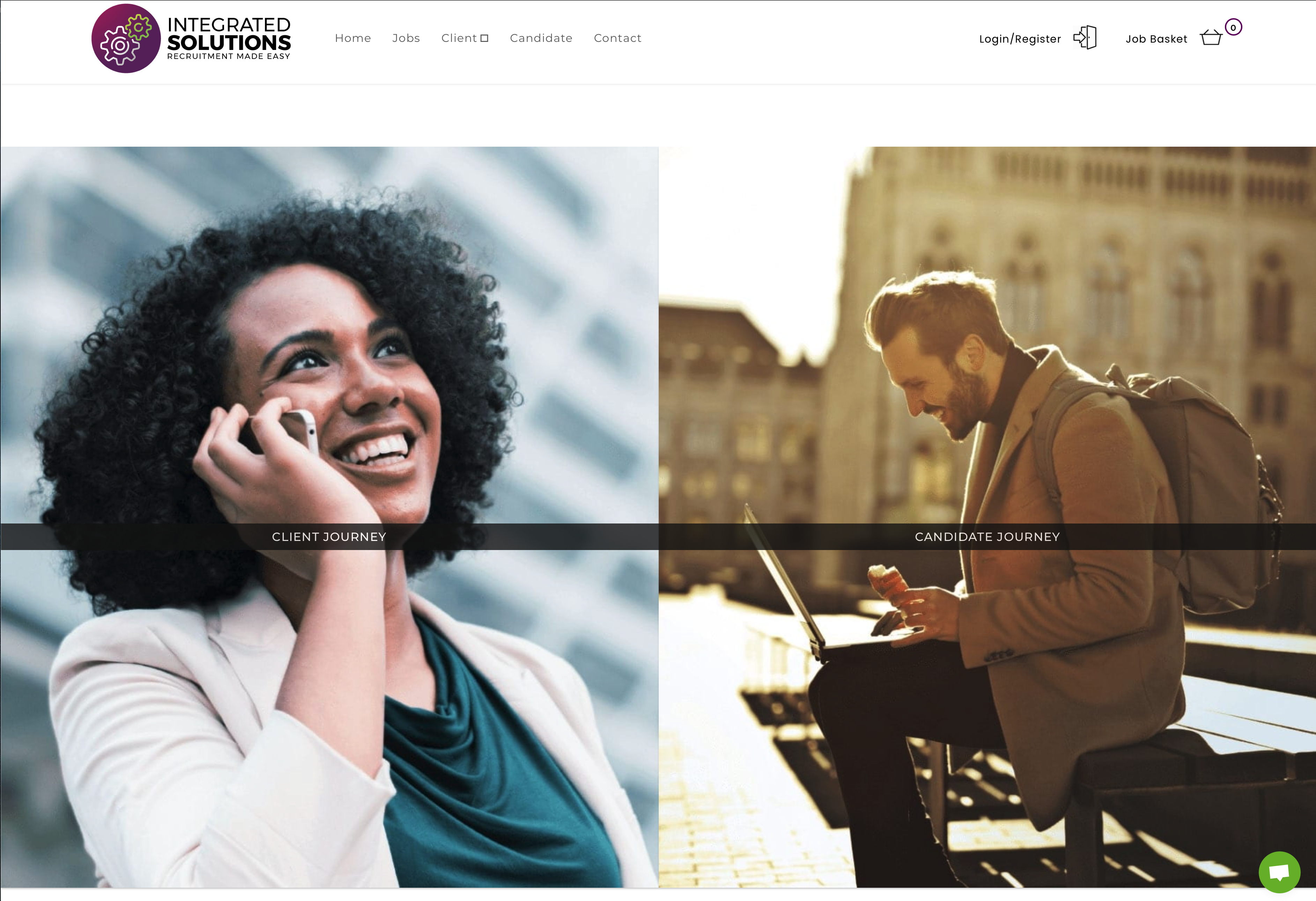 Integrated Solutions services two distinct markets: Clients and Candidates. As such the website needed to be split into two distinct experiences, for clients and candidates. A job board was also installed with the intention for the company to move away from advertising and start building their own brand as a job board in and of itself.