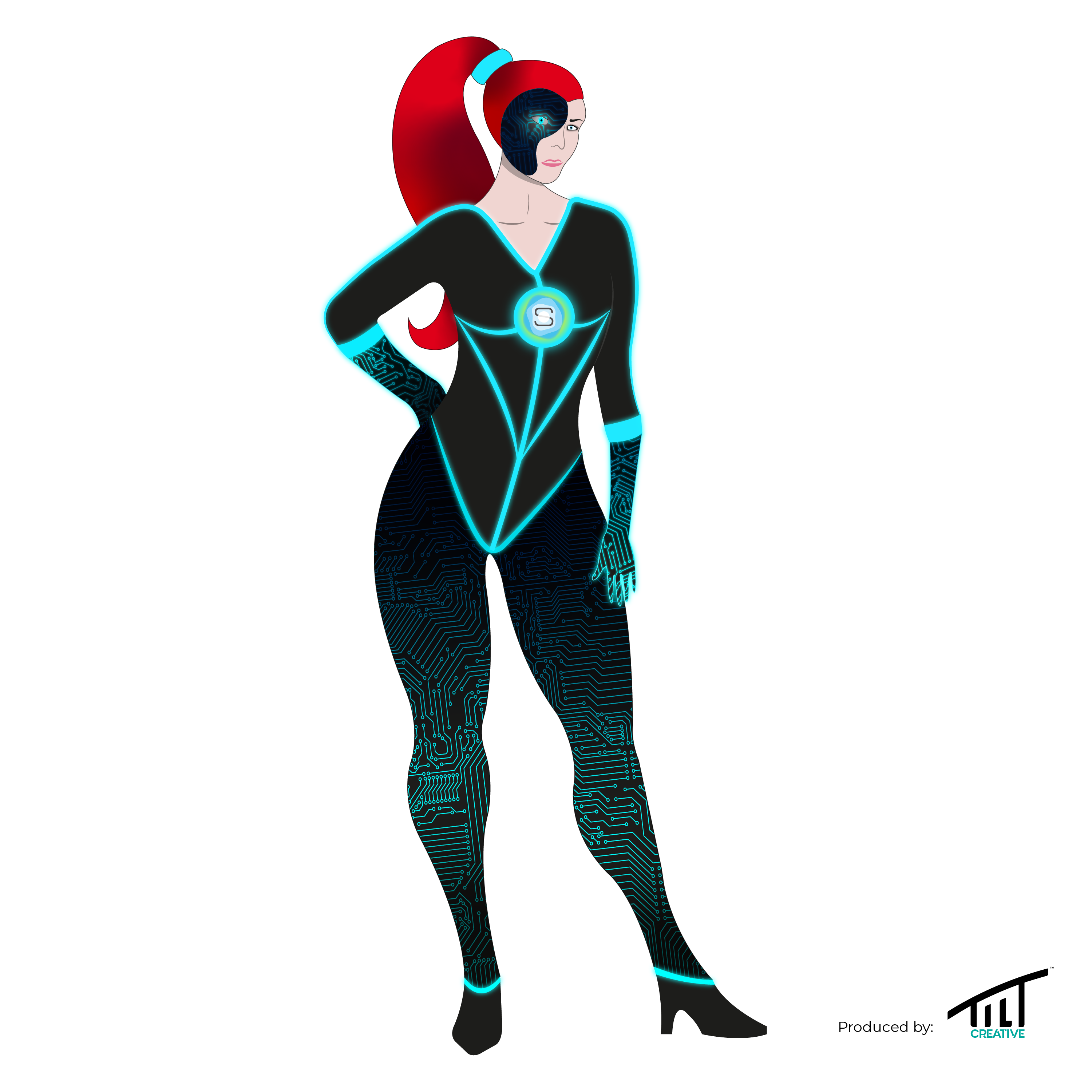 After a long shift, Rebecca jumped on her motorcycle and headed home. The rain obscured her view slightly, but the road was empty enough at 3am. A drunk driver came out of nowhere, flinging her 100 feet from her seat and landing her on a treacherous cliff face. Her skill as a talented hacker was too important to lose, so she was taken to a special facility by her employer, who dabbled in AI tech and prosthetics, where she was made whole. Half human, half tech, her arms, legs and part of her face were replaced with AI prosthetics. Her technical upgrades have allowed her brain to work twice as fast, giving her the ability to problem solve at impossible speeds, while her robotic hands allow her to type so fast that they blur over the keyboard.